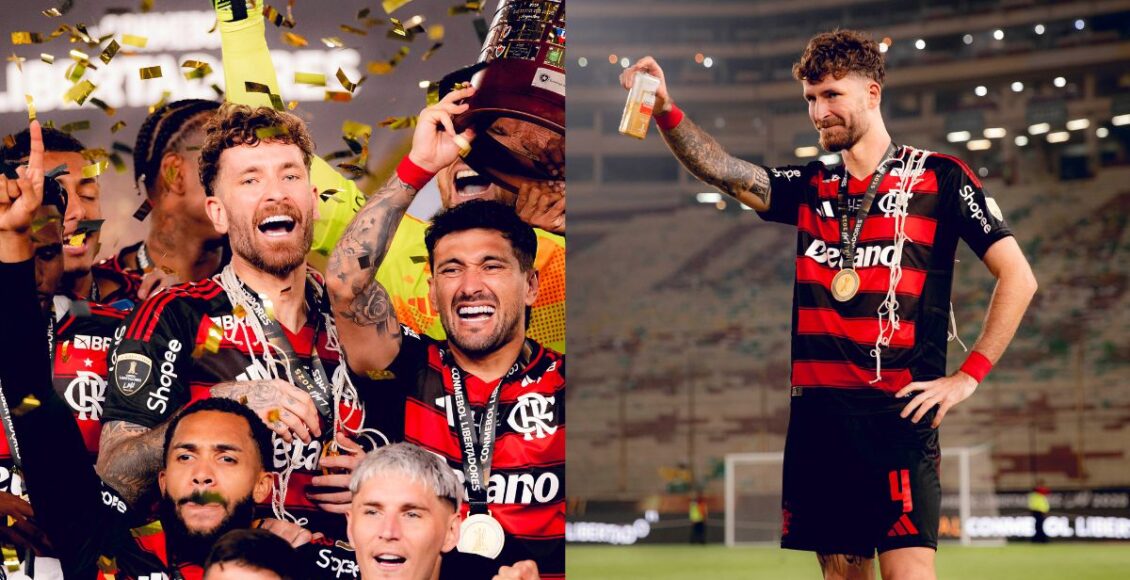 Léo Pereira, zagueiro do Flamengo, comemorou o título da Libertadores no último sábado (29) ao lado de sua equipe. O Rubro-Negro celebrou a conquista com um trio elétrico no centro do Rio de Janeiro e festas particulares. Em um desses eventos, Léo Pereira foi visto saindo acompanhado pela ginasta Flávia Saraiva, medalhista olímpica.